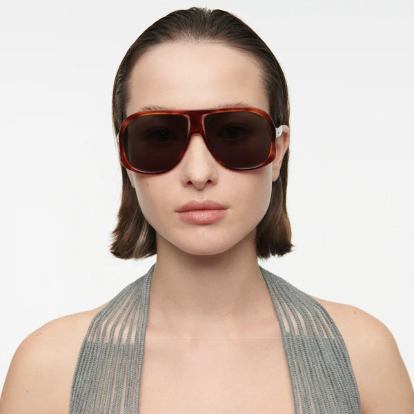 Gafas de sol THRIVE 015 de la colección VANGUARD Gigi Studios. Un modelo para mujer con montura elaborada de manera artesanal en acetato de origen italiano de máxima calidad. La montura del modelo THRIVE 015 tiene un estilo retro y una forma orgánica. Las lentes CR39 con máxima protección UVA y UVB y tratamiento anti-reflejante garantizan gran confort visual.