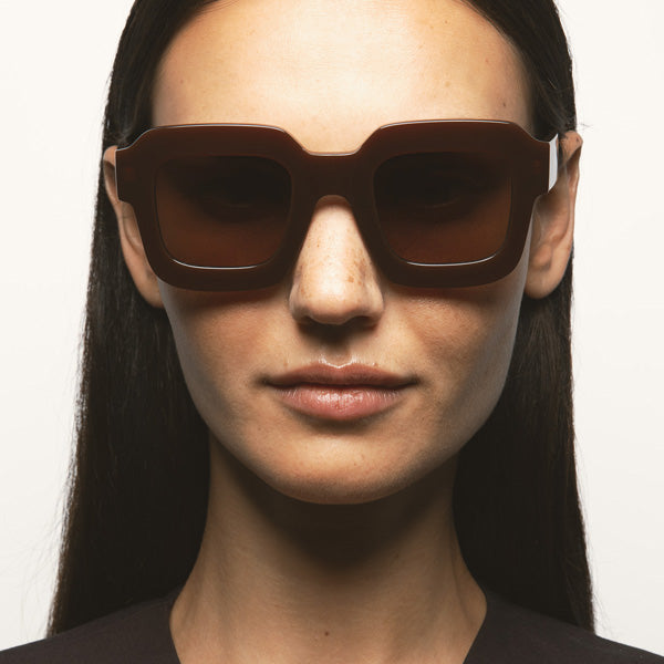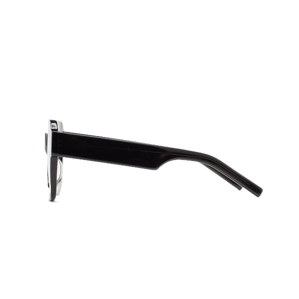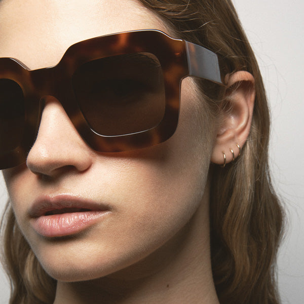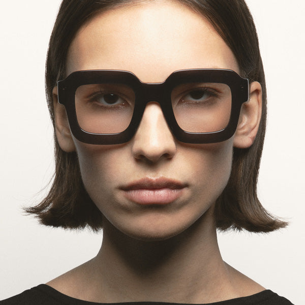 Gafa de sol de forma cuadrada Kaleos. Frontal y varillas de acetato. Lente base 2 con protección UV y tratamiento antirreflejante. Lente Categoría 1-3. Plaquetas de acetato incorporadas. Hecha a mano.